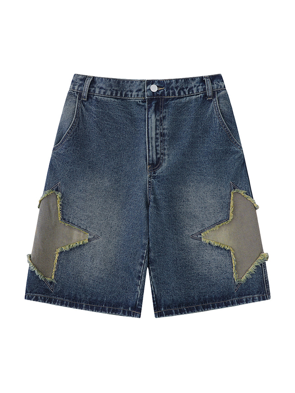 Men’S Washed Distressed Rhinestones Ripped Denim Shorts