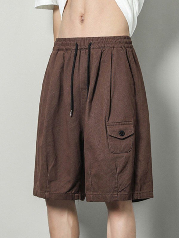 Retro Solid Color Pocket Short Sleeve