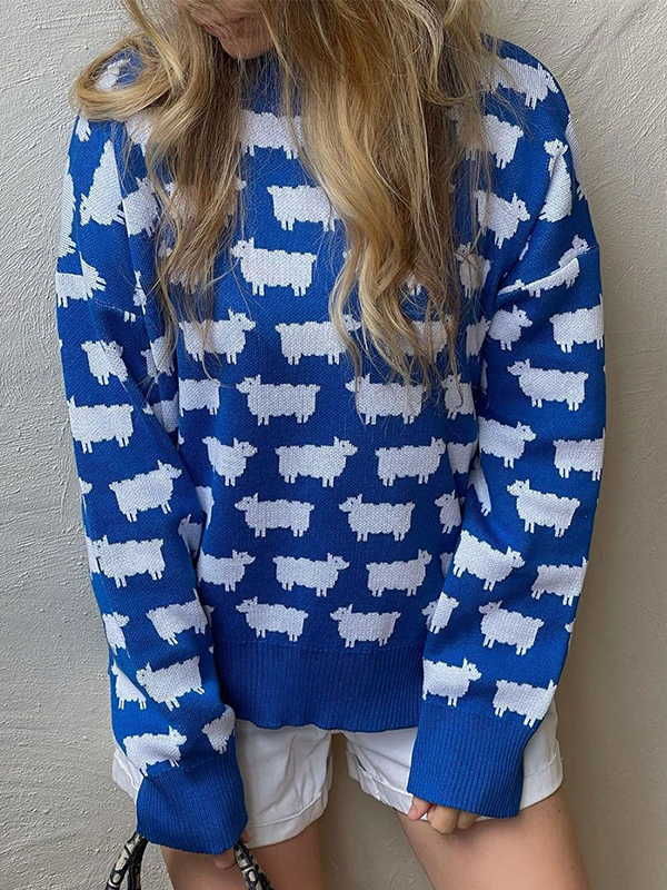 Alpaca print crew neck sweater
