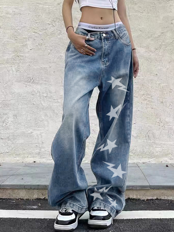 Polar Fleece Star Embroidered Zip Up Oversized Hoodie