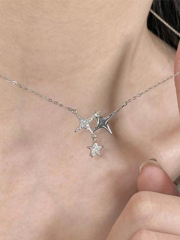 Tassel Chain Rhinestone Heart Charm Faux Pearl Necklace