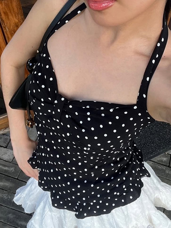 Busty V-Neck Reveals Collarbone Halter Vest