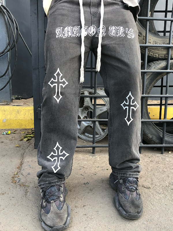 Men’s Cross Print Loose Jeans