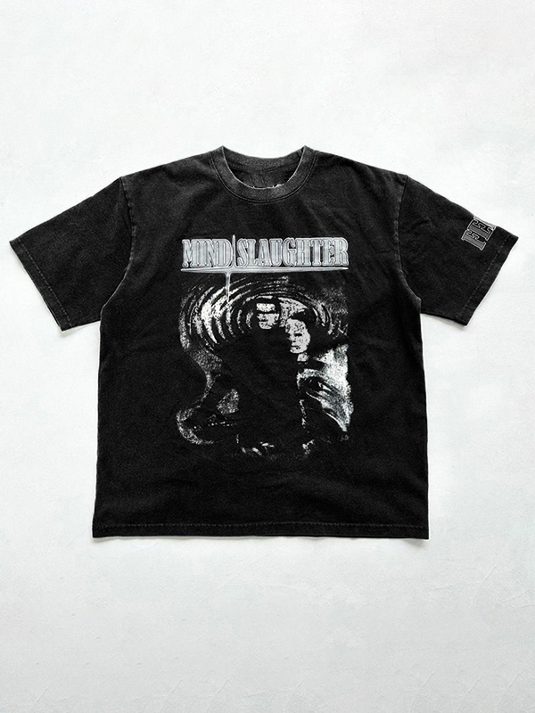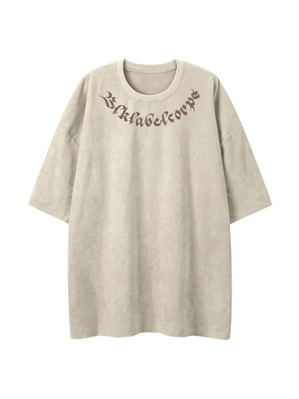 Men’s Vintage Suede Letter Print Short Sleeve Tee
