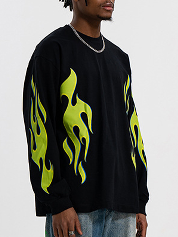 Men’s Luminous Green Flame Print Long Sleeve Tee