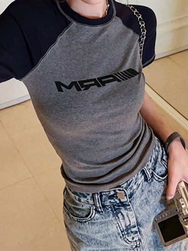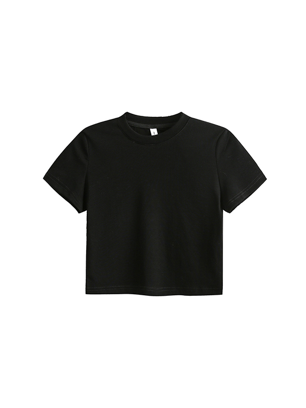 Dark Style Print Crew Neck Cropped Short Sleeve Tee