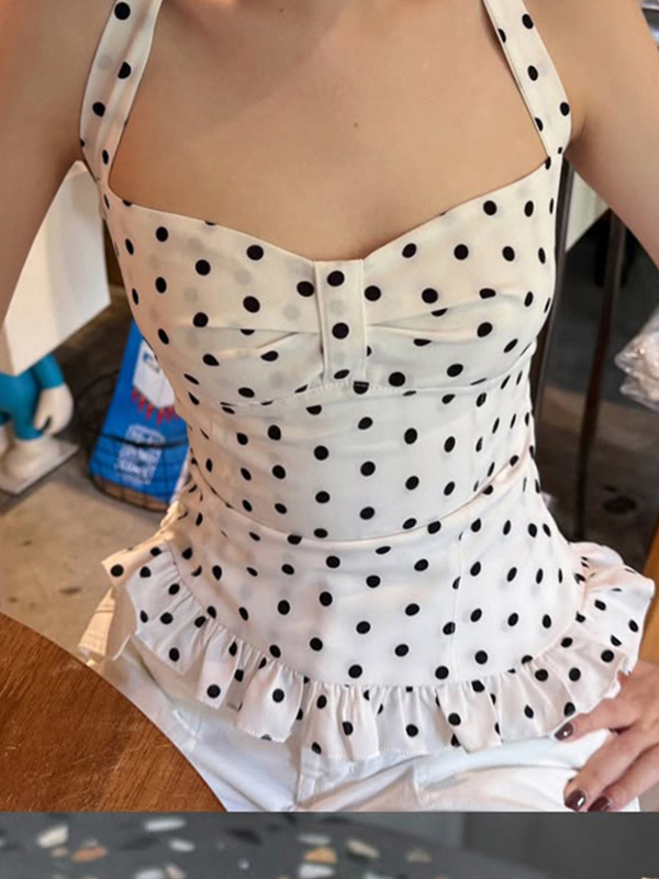 Busty V-Neck Reveals Collarbone Halter Vest