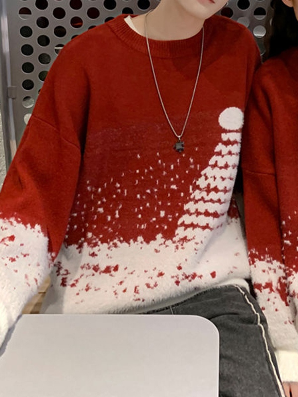 Reversible Print Square Neck Slim Long Sleeve Knit