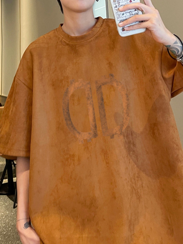Men’s Letter Suede Oversized Short Sleeve Tee