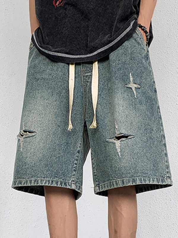 Men’S Retro Simple Washed Loose Wide Leg Shorts