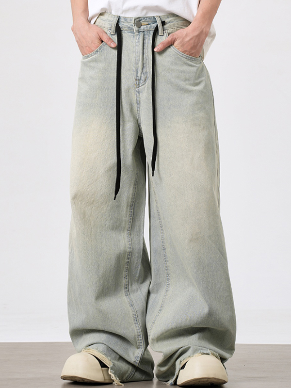 Men’s Washed Pleated Collar Neck Short Denim Jacket