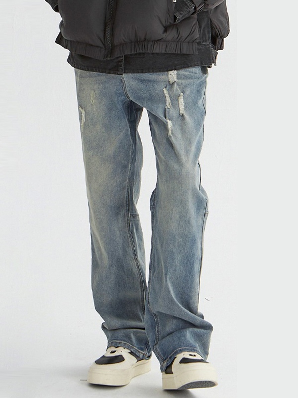 Unique Design: The jeans feature a distressed and washed design with ripped detailing, giving it a cool streetStyle vibe.