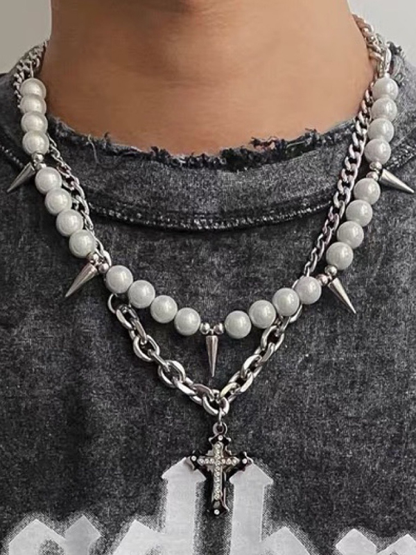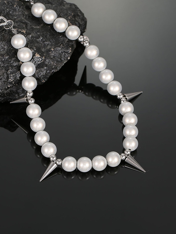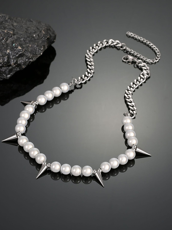Men’s Punk Faux Pearl Stud Splice Necklace
