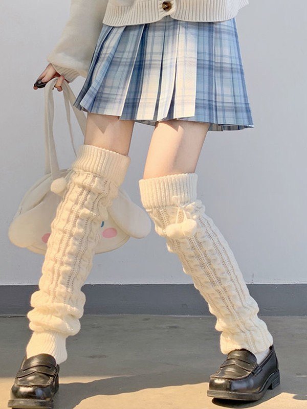 Details: Made from cable knit fabric, with pompom embellished at cuffs.