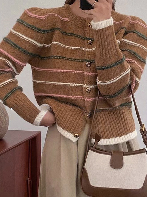 Contrast Color Striped Short Knit Cardigan