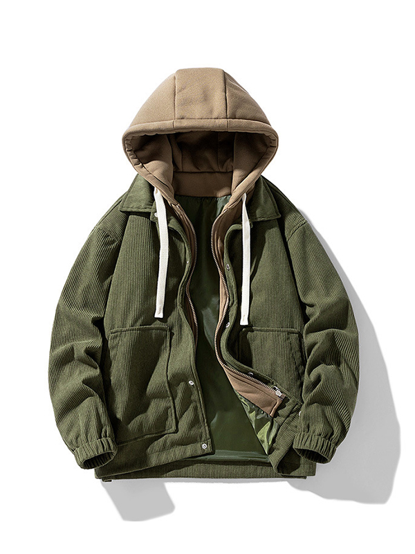Men’s Corduroy Contrast Color Hooded Zip Up Jacket