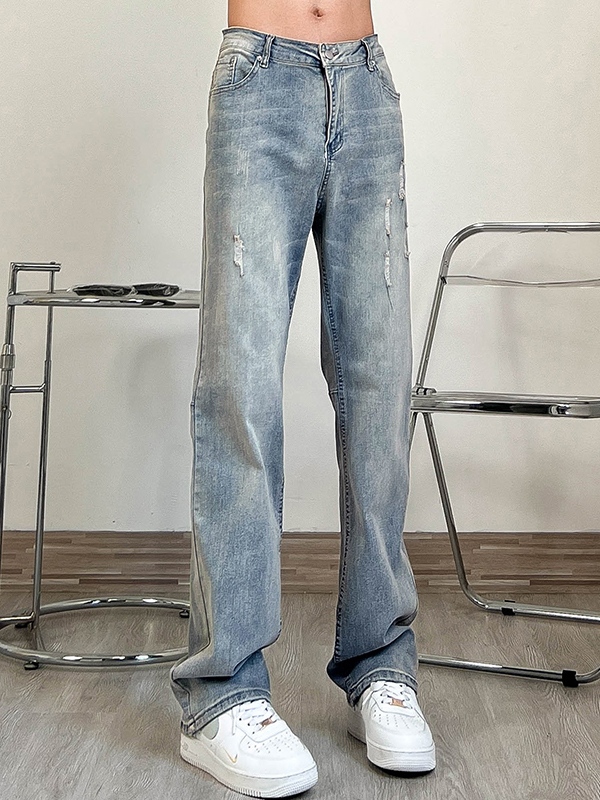 Men’s Vintage Wash Distressed Loose Jeans