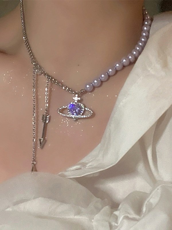 Double Layered Rhinestone Butterfly Pendant Necklace