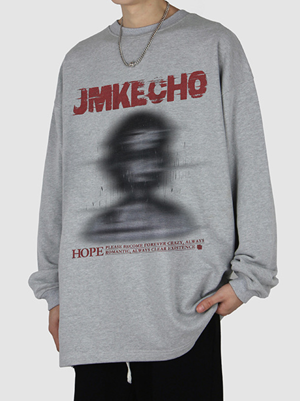 Men’s Street Blurred Portrait Print Wash Sweatshirt