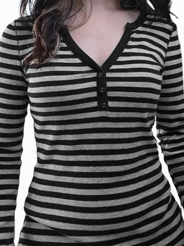 Striped V Neck Elastic Long Sleeve Tee